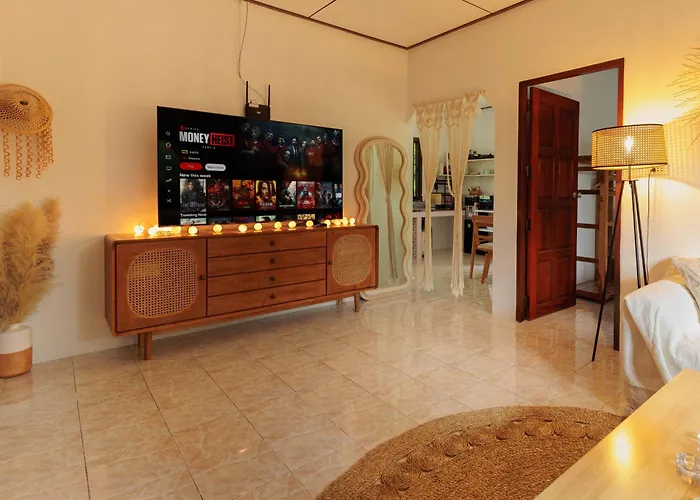 Umístěna ve městě Ko Pha Ngan, vila Vila Amsterdam House - Hin Kong - Double King Bed - 4K Smarttv je 1-ložnicové ubytování, které obsahuje terasu s výhledem na zahradu. Pláž Baan Tai je vzdáleno méně než 10 minut jízdy od ubytování, a Amsterdam je vzdáleno 7 minut chůze.